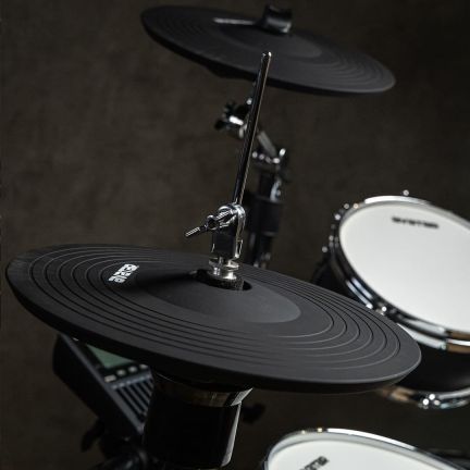 Conveniently compact and ideal for drumming at home, the TD-07KV V-Drums kit delivers the superior expression and playability of high-end V-Drums in an affordable package. Roland's original ultra-quiet, double-ply mesh heads feature across the snare and tom pads, while large crash and ride pads and a dedicated kick pad with realistic, satisfying pedal feel round out the kit. The TD-07KV also lets you explore creative opportunities that go far beyond any acoustic kit, with deep editing tools to craft custom sounds, onboard Bluetooth to play along with music tracks and lessons, USB to connect with computer recording software, and much more. TD-07 module with 25 preset kits, 25 user kits, and 143 instruments V-Edit, EQ, ambience, and 30 multi-effects offer deep editing tools to create your perfect drum kit sounds Snare and tom pads with Roland's legendary double-ply, tension-adjustable mesh drumheads One PDX-8 8-inch snare pad with independent head and rim zones for assigning different sounds and three PDX-6A 6-inch single-zone tom pads KD-10 kick pad offers realistic rebound and beater feel while minimizing noise and vibration CY-8 12-inch crash and ride cymbals with choke support 10-inch hi-hat cymbals and integrated foot pedal, with fine incremental control between open and closed positions Four-post drum rack stand with metal construction and sturdy clamps with strong grip Integrated Bluetooth lets you wirelessly stream sound from smartphones, tablets, and other Bluetooth devices and send MIDI data to music apps Advanced built-in metronome with the ability to adjust time signature, note value, and click tone Onboard coach function provides interactive tools to build timing skills and track progress USB for recording audio and MIDI data to computer music software Support for kit expansion with a second crash cymbal (CY-8 V-Cymbal and MDY-Standard cymbal arm sold separately)