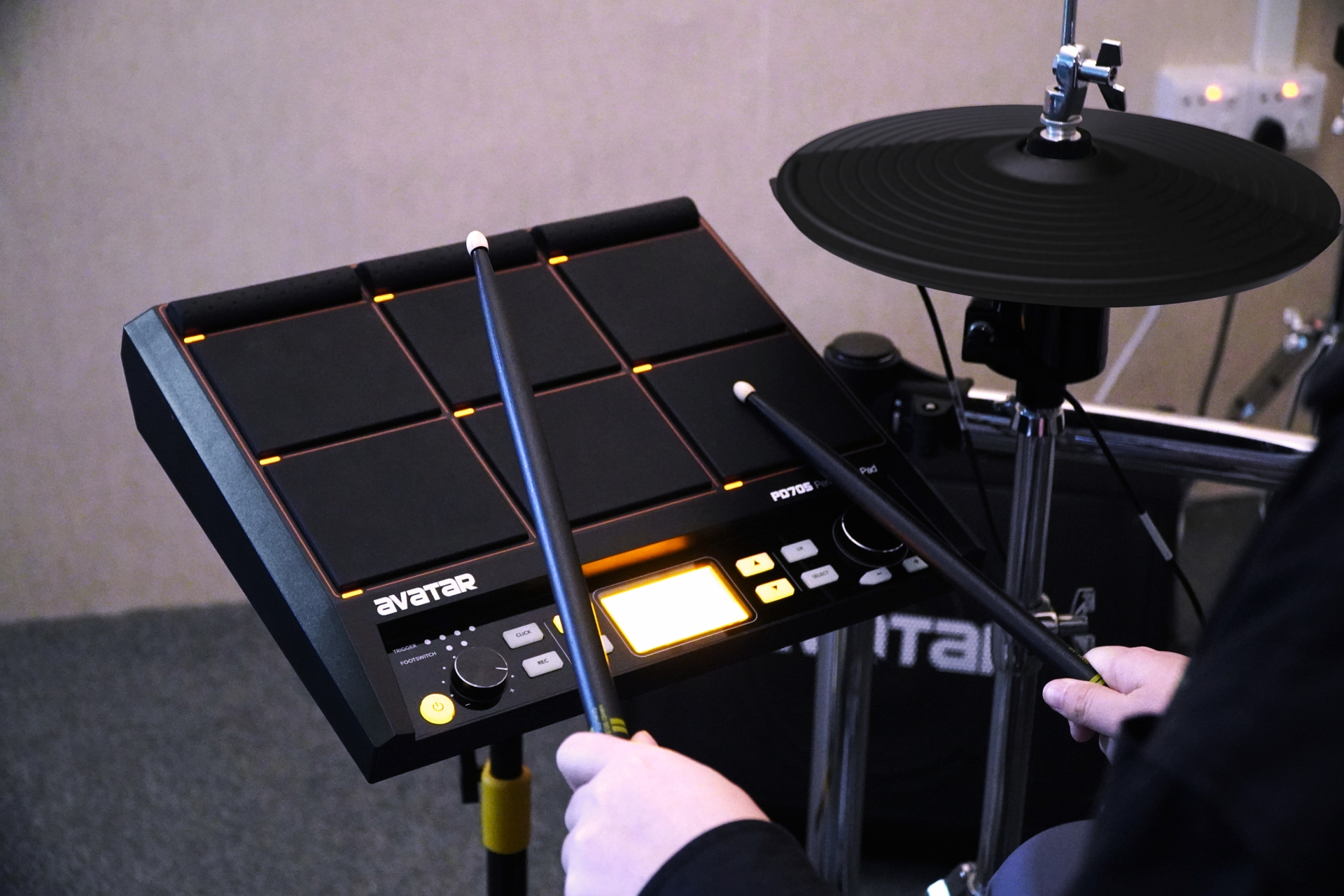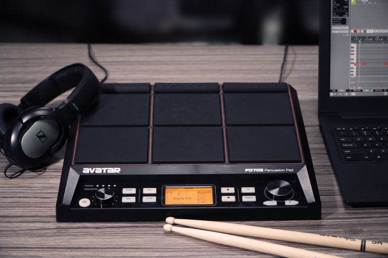 Avatar PD705 9-Trigger Multipad Percussion Sampling Pad Desktop Electric Drum Set With 600+ Sounds, Built-in Looper, Effecter, Metronome, Support USB-MIDI Connectivity.PD705 Sample Pad is a multipad that combines nine velocity-sensitive silicone pads having decent rebound and natural feel. Every pad supports to set A/B layer sounds.