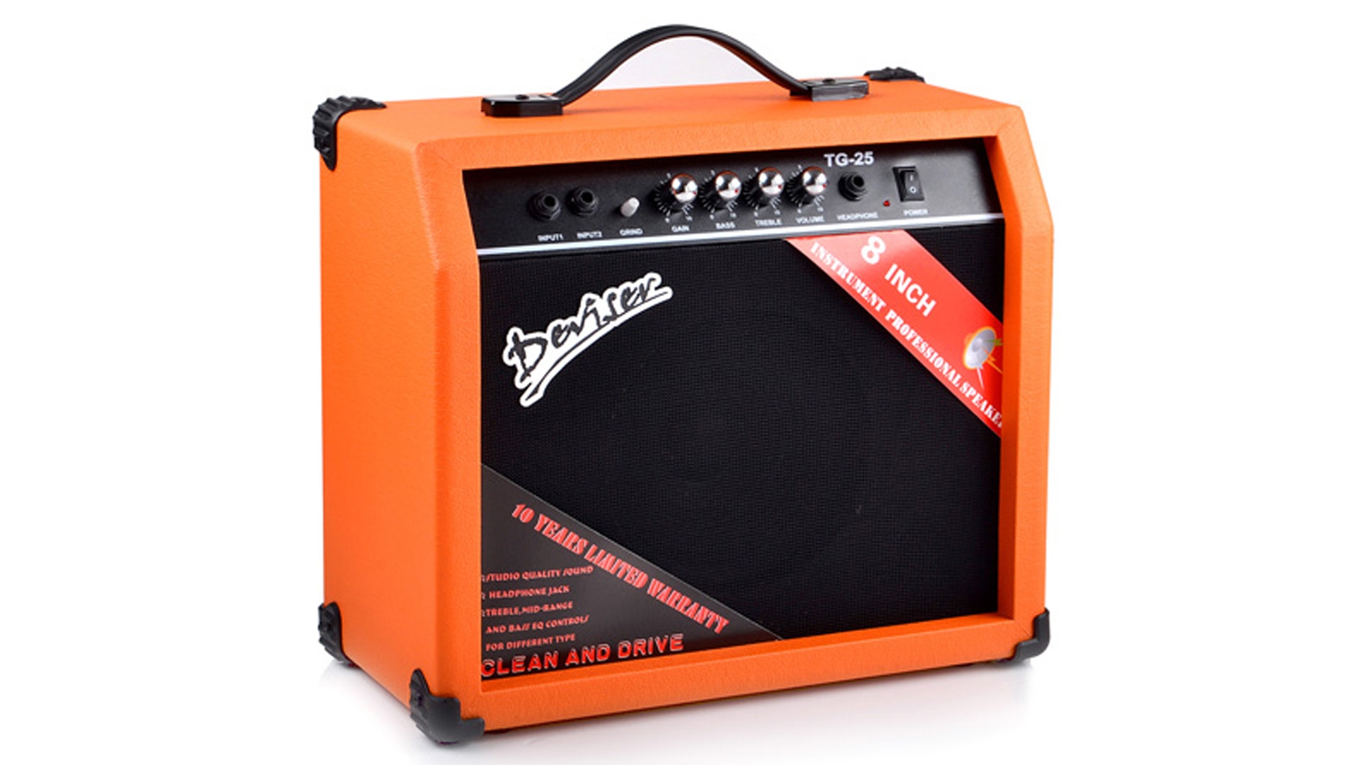 Pojačalo za gitaru Deviser TG-25OR 25w Proizvođač: Deviser Stanje: Na stanju RSD 10.600,00 Dodajte u korpu Kupite odmah Opis Specifikacija Dostava Kompaktno pojačalo za gitaru Music master GA25 snage 25w, sa zvučnikom veličine 8" i distorzijom.Veoma popularan model na našem tržištu. Gitarsko pojačalo Model::GA25 Snaga:25W Ulaz:Guitarski/Mikrofonski Ekvilajzer:Jačina/Bas/Visoki Distorzija Izlaz za slušalice Besplatna isporuka na teritoriji cele Srbije!
